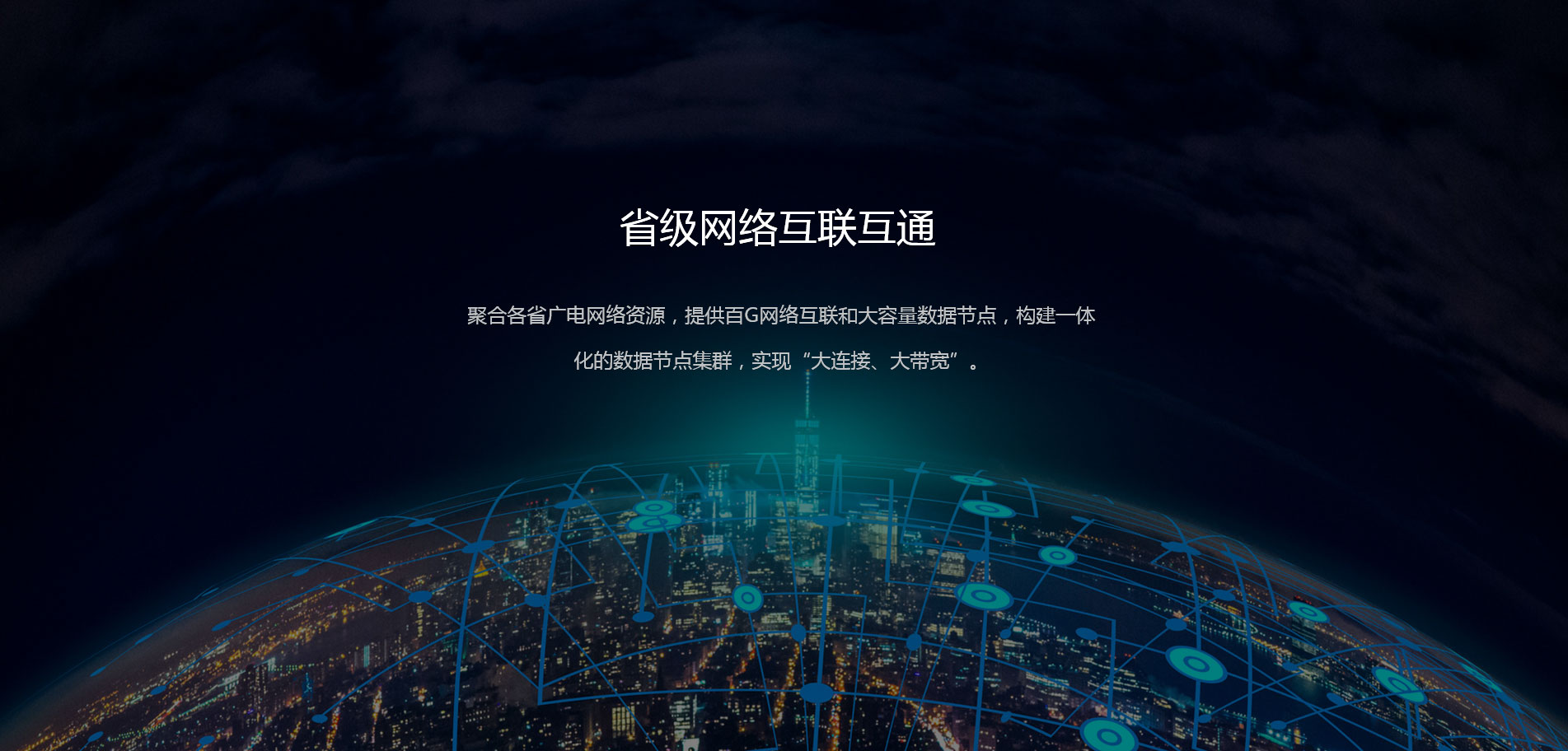 聚合各省廣電網(wǎng)絡(luò)資源,提供百G網(wǎng)絡(luò)互聯(lián),構(gòu)建全國性省際網(wǎng)絡(luò)互聯(lián)互通與數(shù)據(jù)節(jié)點(diǎn)等基礎(chǔ)服務(wù);基于大連接與大數(shù)據(jù)融合的業(yè)務(wù)模式,提供廣電特色的數(shù)據(jù)技術(shù)服務(wù)。